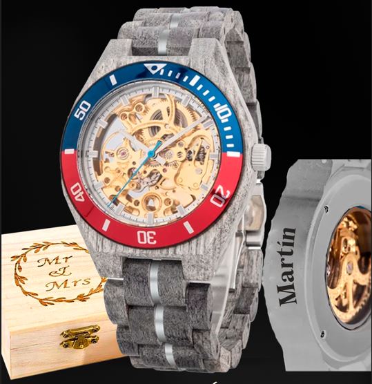 SET VOLKER RELOJ PERSONALIZADO DE MADERA CON CAJA